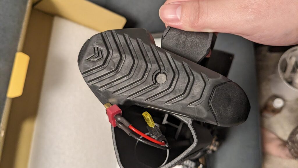 バッテリーはストック内部に収めます。端子はT型でハウジングは細身のバッテリーかセパレートタイプが良さそうな作りになってます。工具無しでバッテリー入れの蓋は開閉できます。GOOD👍。