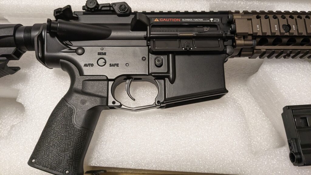 ちなみに製品は4色展開で、今回買ったのは一番Mk18っぽいFDEですね。ハンドガードだけ色が違うやつ。どの色も捨てがたいのだが、自分の中で一番Mk18してる色を選びました。ちなみに一番人気はFDEみたいですね。まあー悪く言えば没個性って事かな(笑)。