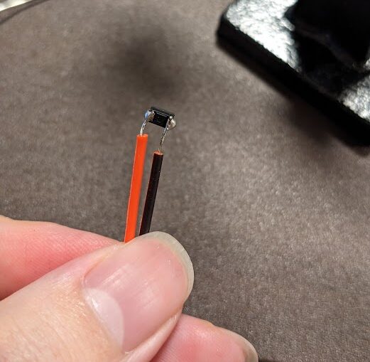 SBDに銅線をはんだ付けしました。