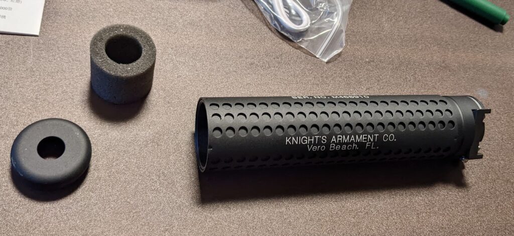 Amazon商品画像見てもらうと分かるのだが、搭載できるサプレッサーの代表例の中に”VFC M4 KACサプレッサー”の記載があるのだ。いわゆるナイツタイプ NT4サプレッサーのことである。