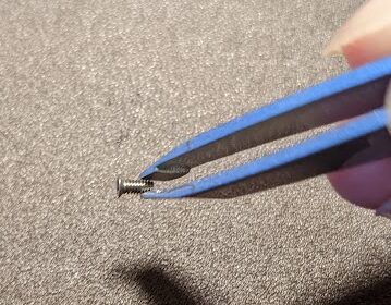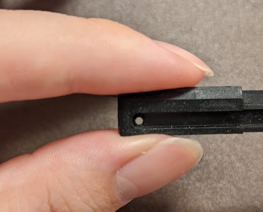 剥がしたら樹脂レールのピンが付いてた場所をピンバイスか何かで大体1.5~1.7㎜くらいの穴を開ける。裏側はちょい大きめ3㎜くらいのピンバイスとかで少し座ぐり加工。