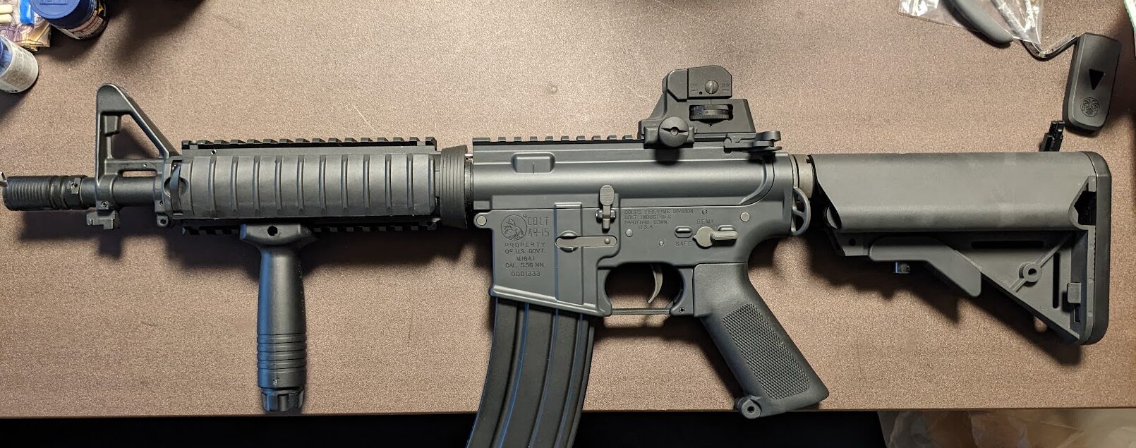いやー、レールカバーとフォアグリップ付けたけどパッと見てCQB-Rだな(笑)